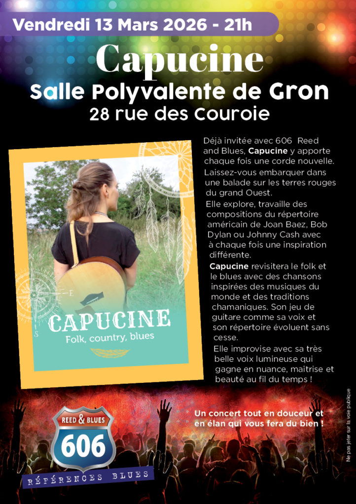 Vendredi 13 mars, nous accueillons la chanteuse folk Capucine pour deux animations auprès de ces deux publics pour boucler les projets mais un concert pour TOUS est aussi programmé à la salle des fêtes de Gron.
